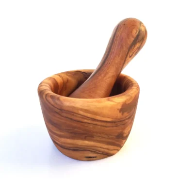 Mörser mit Stößel handgemacht aus Olivenholz Ø 10 cm