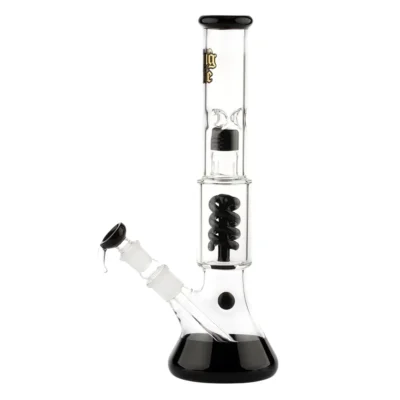 • Hochwertige Glasbong aus Borosilikatglas Höhe 35 cm für maximale Rauchentwicklung 18,8 mm Schliff für starkes Zugverhalten Integriertes Kühlsystem Breiter Standfuß Ø 55 mm für Stabilität