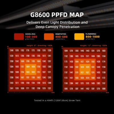 - 🌱 Komplettset für 9–12 Pflanzen – 150×150×200 cm Growbox 💡 2025 G1000W Vollspektrum LED-Lampe mit Balkendesign 📲 Smart Control via App – Licht, Lüfter & Klima automatisch steuern 🌬️ 6” EC-Ventilatoren + Aktivkohlefilter für perfekte Klimaführung 🔗 All-in-One Paket – sofort startklar, keine Extras nötig