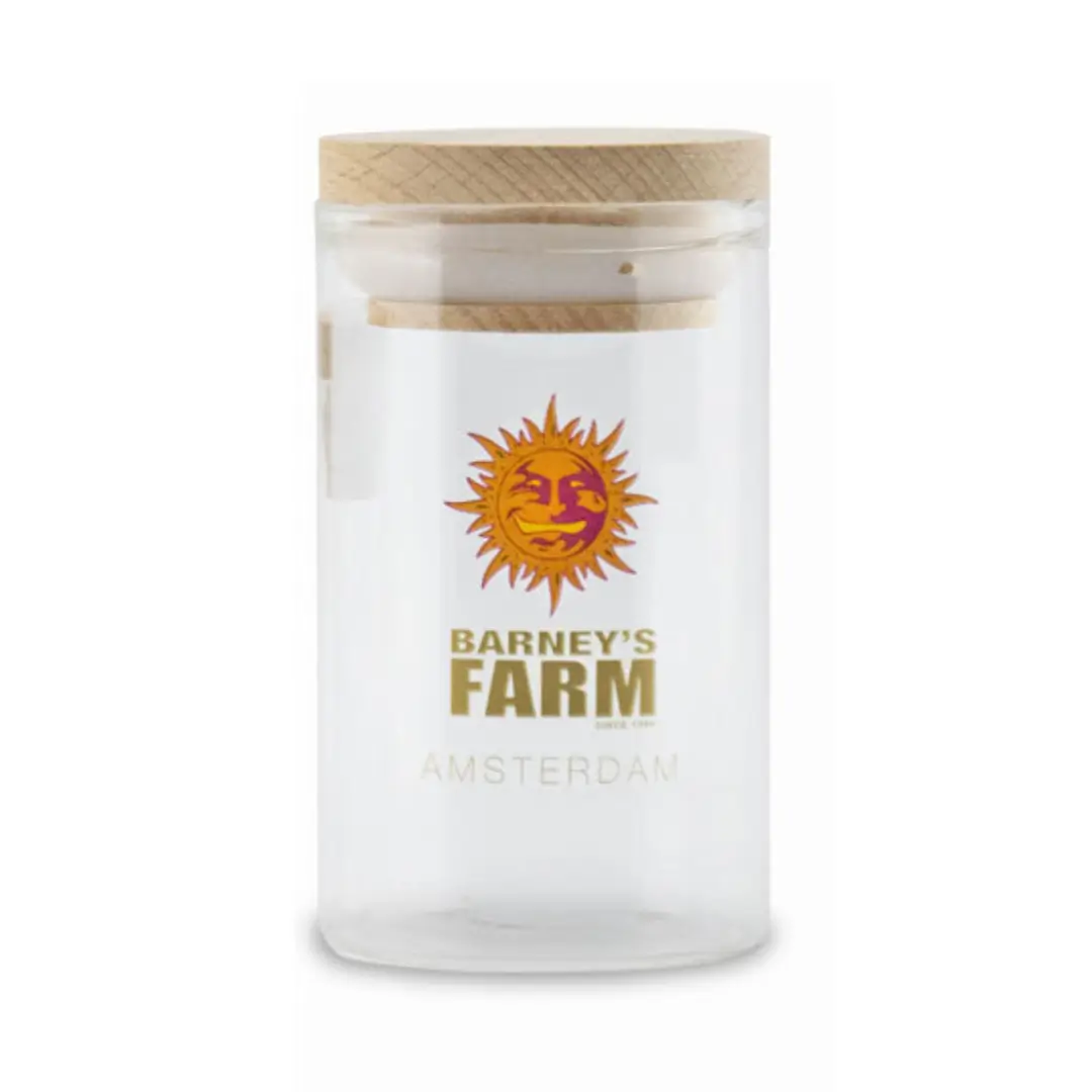 Das Barneys Farm Einmachglas mit ca. 120 ml Fassungsvermögen ist die ideale Lösung zur stilvollen und luftdichten Aufbewahrung deiner Cannabisblüten, Kräuter oder Seeds. Das klare Glasdesign mit dem legendären Barneys Farm Logo in Gold und Orange verleiht deinem Setup einen hochwertigen Touch – ob im Regal, auf dem Tisch oder unterwegs.