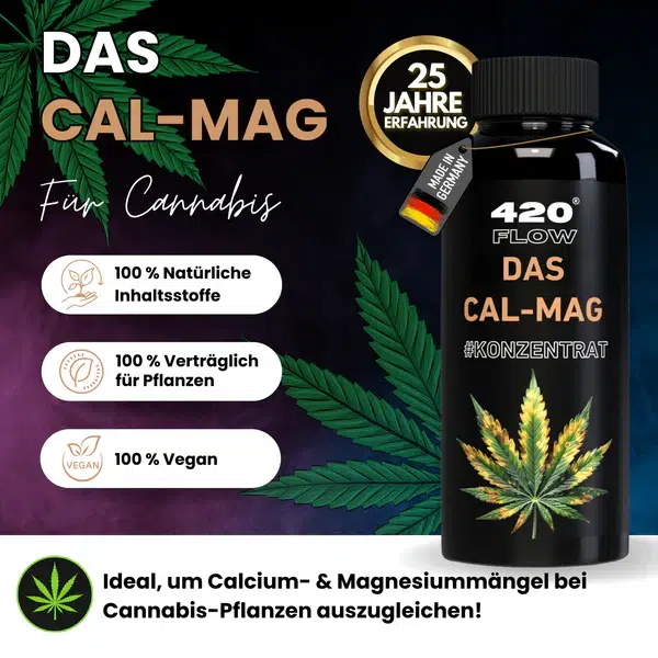 Das CalMag – Calcium & Magnesium von 420Flow® ist ein gezielter Nährstoff Booster zur optimalen Versorgung Deiner Pflanzen mit zwei essenziellen Elementen: Calcium und Magnesium. Diese beiden Nährstoffe sind unverzichtbar für stabile Zellstrukturen, eine effiziente Photosynthese und eine gesunde, gleichmäßige Pflanzenentwicklung. Besonders bei modernen Anbaumethoden wie LED Grows ist eine zusätzliche CalMag Versorgung entscheidend, um Mangelerscheinungen zuverlässig zu vermeiden.