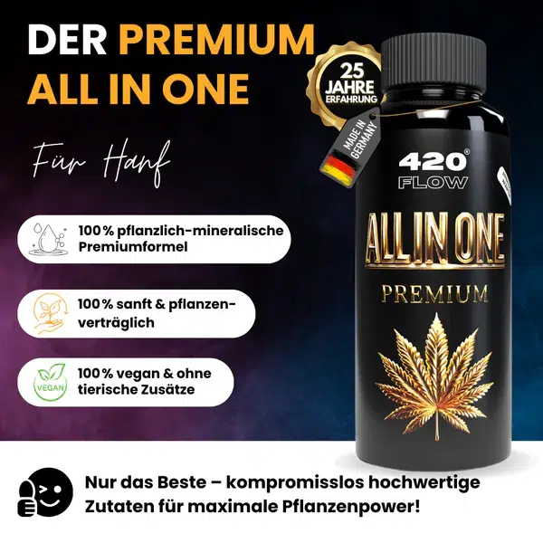 Schon zu Beginn profitieren Deine Pflanzen von einer konstanten, bedarfsgerechten Versorgung. Der Premium All in One sorgt für sichtbare Pflanzenkraft, gleichmäßige Entwicklung und eine stabile Grundlage für Aroma, Geschmack und Ertrag.