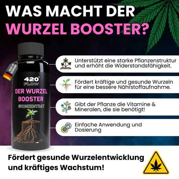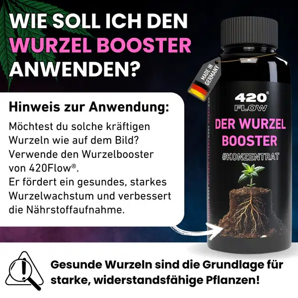 Der Wurzelbooster von 420Flow® ist der gezielte Starthelfer für vitale Pflanzen und ein kraftvolles Wurzelsystem. Eine starke Wurzelzone ist die Grundlage für effiziente Nährstoffaufnahme, stabiles Wachstum und hohe Widerstandskraft. Genau hier setzt dieser Booster an: Er fördert ein dicht verzweigtes, gesundes Wurzelwachstum und schafft optimale Bedingungen für eine gleichmäßige Entwicklung vom ersten Gießen bis zur Ernte.