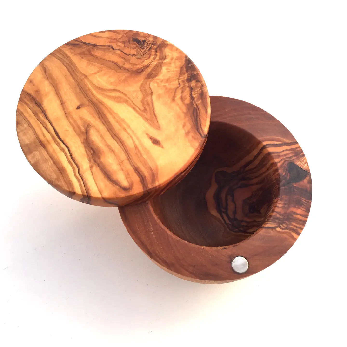 - Handgefertigte Dose aus Olivenholz mit Magnetverschluss