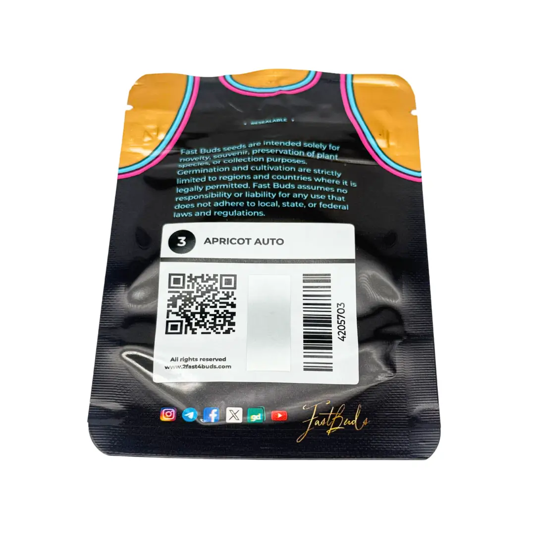 Fast Buds Apricot Auto ist eine fruchtige, indica-dominante Autoflowering-Sorte, die mit einem beeindruckenden THC-Gehalt von bis zu 26 % punktet. Ihre kurze Blütezeit von nur 9–10 Wochen, kombiniert mit dem köstlichen Aroma frischer Aprikosenmarmelade, macht sie zur idealen Wahl für Grower, die schnelle und hochwertige Ergebnisse bevorzugen.