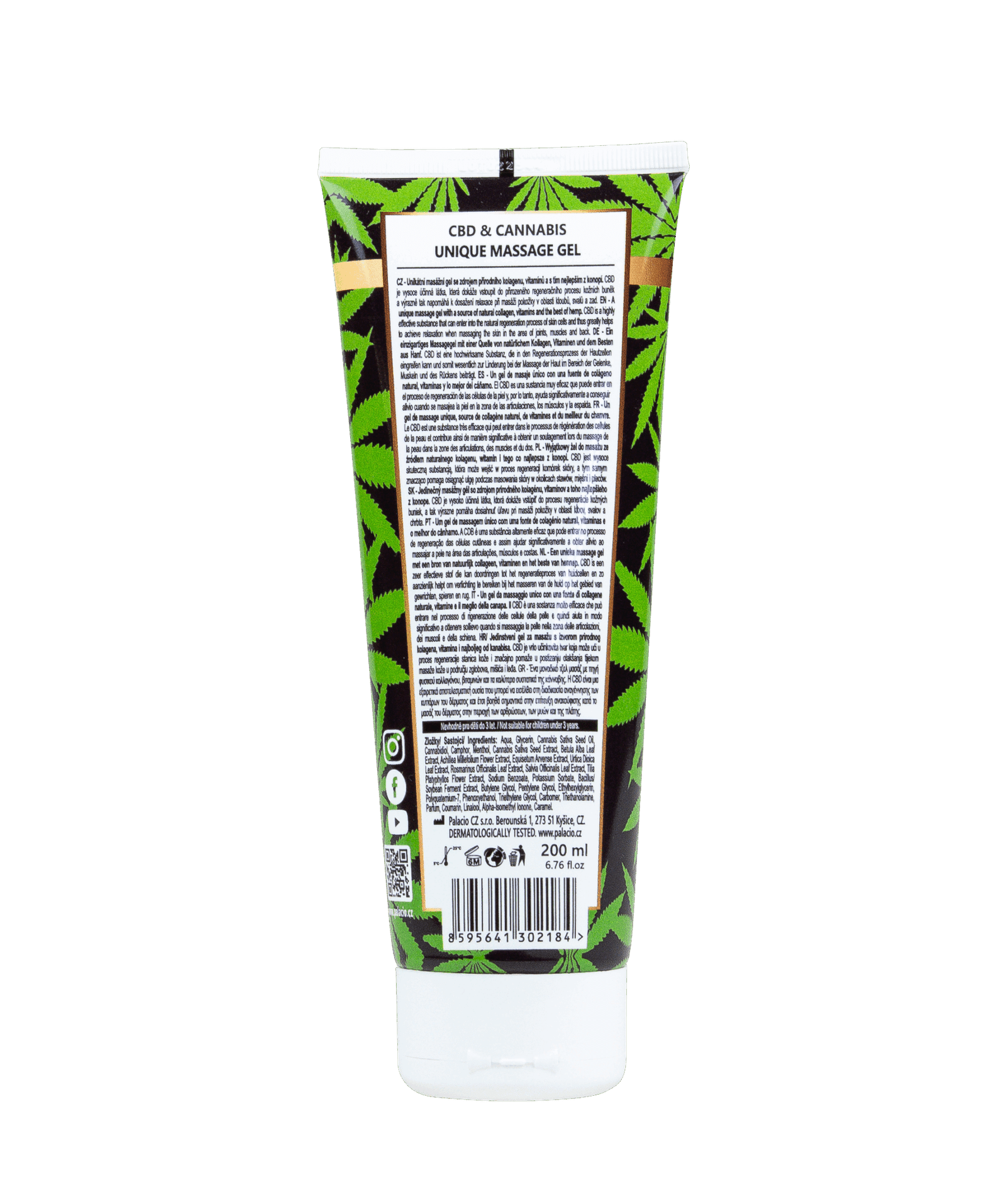 Das Palacio CBD Fortis Massage Gel arbeitet mit einer hochkonzentrierten Mischung aus Hanföl, CBD (50 mg) und Hanfextrakt, die für ihre entzündungshemmenden, beruhigenden und hautstärkenden Eigenschaften bekannt sind.