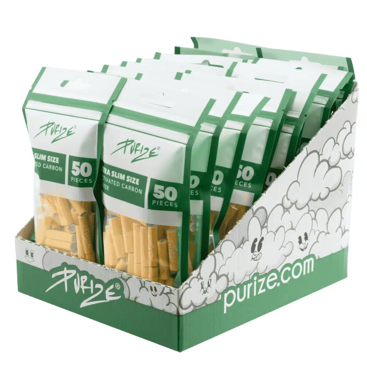PURIZE Aktivkohlefilter XTRA Slim 6mm im Beutel Gelb – 50 Stück