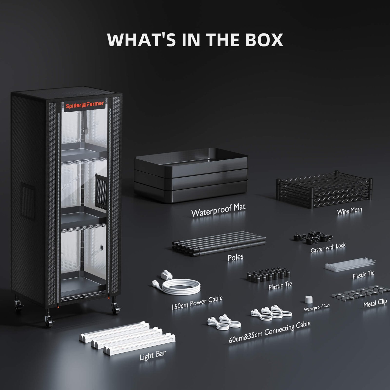 - Zubehör: 3 Drahtablagen, 3 wasserdichte Matten, 1 Zelt, Rollen mit Bremse