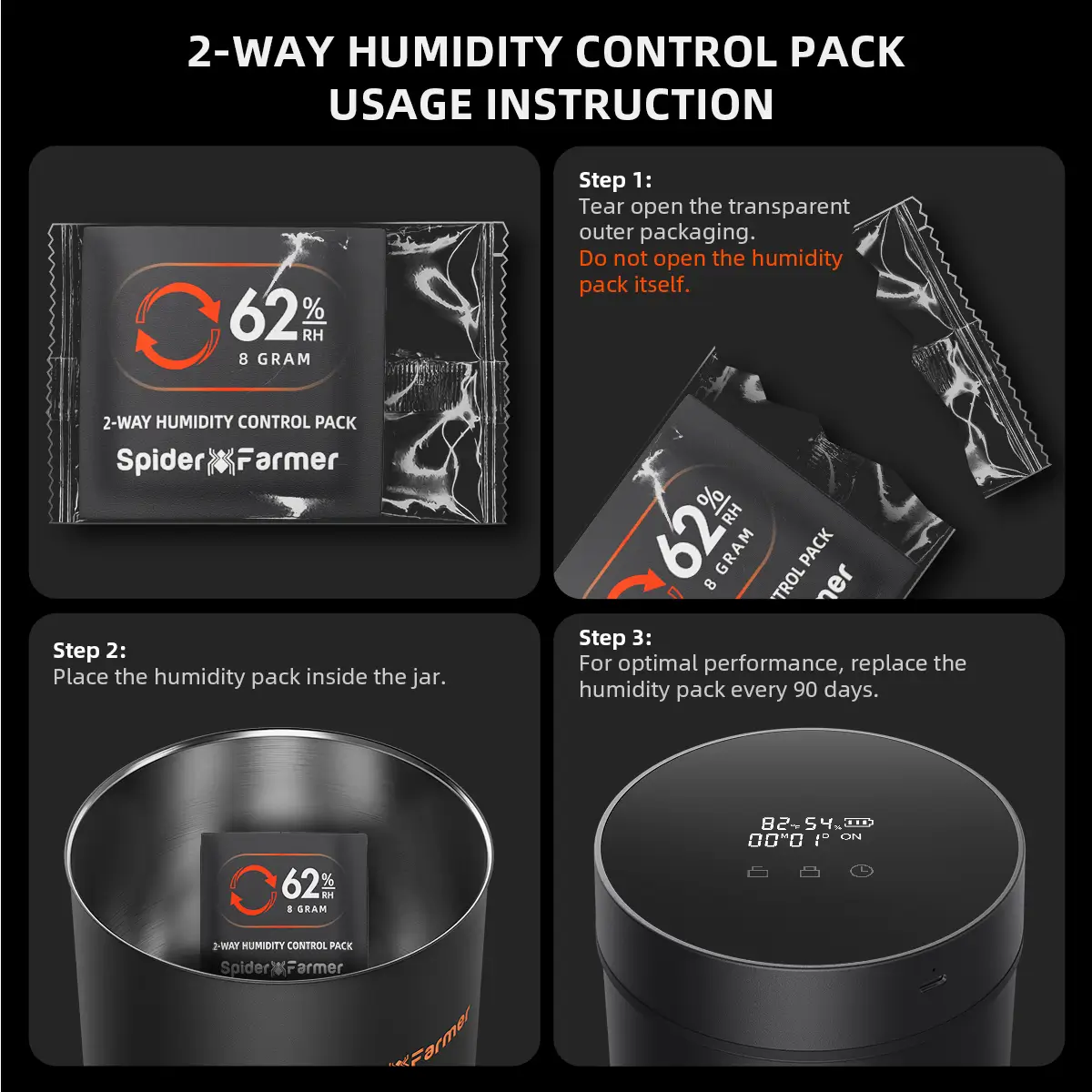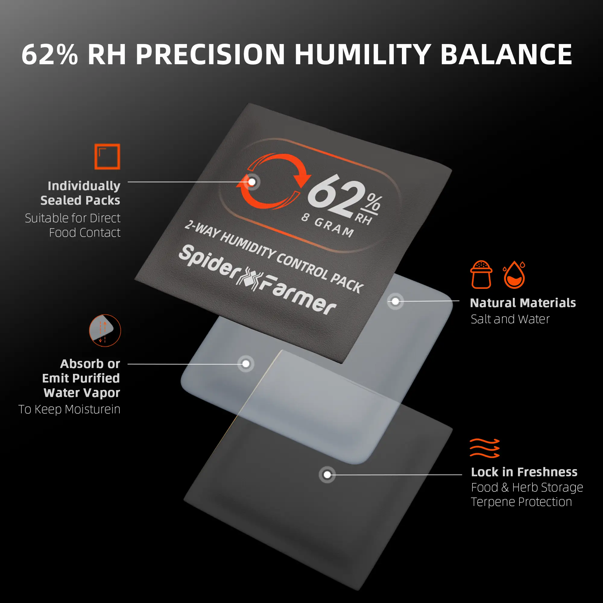 Eigenschaften – Spider Farmer Feuchtigkeitsregler 62% 8g, 10 Stück