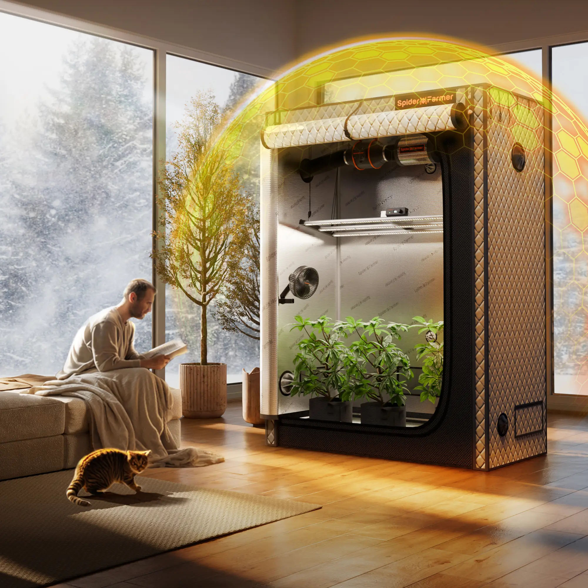 Das Spider-Farmer-Designteam hat diese Isolationshülle gezielt für Grower entwickelt, die auch bei niedrigen Außentemperaturen konstante Bedingungen benötigen. Umfangreiche Tests mit verschiedenen Materialien und Nähtechniken führten zu einer passgenauen Lösung, die isoliert, ohne den Zugang zum Growzelt einzuschränken.