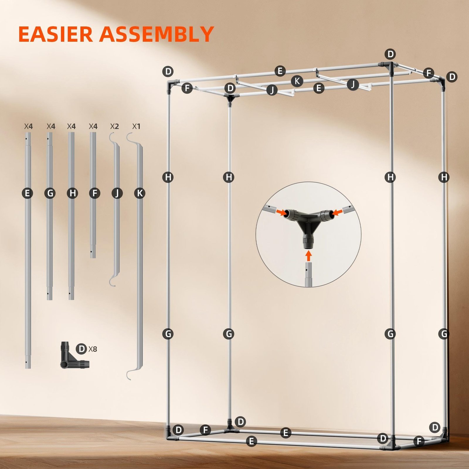 Stabiler Rahmen mit 16-mm-Stahlstangen – trägt bis zu 65 kg und sorgt für Langlebigkeit.