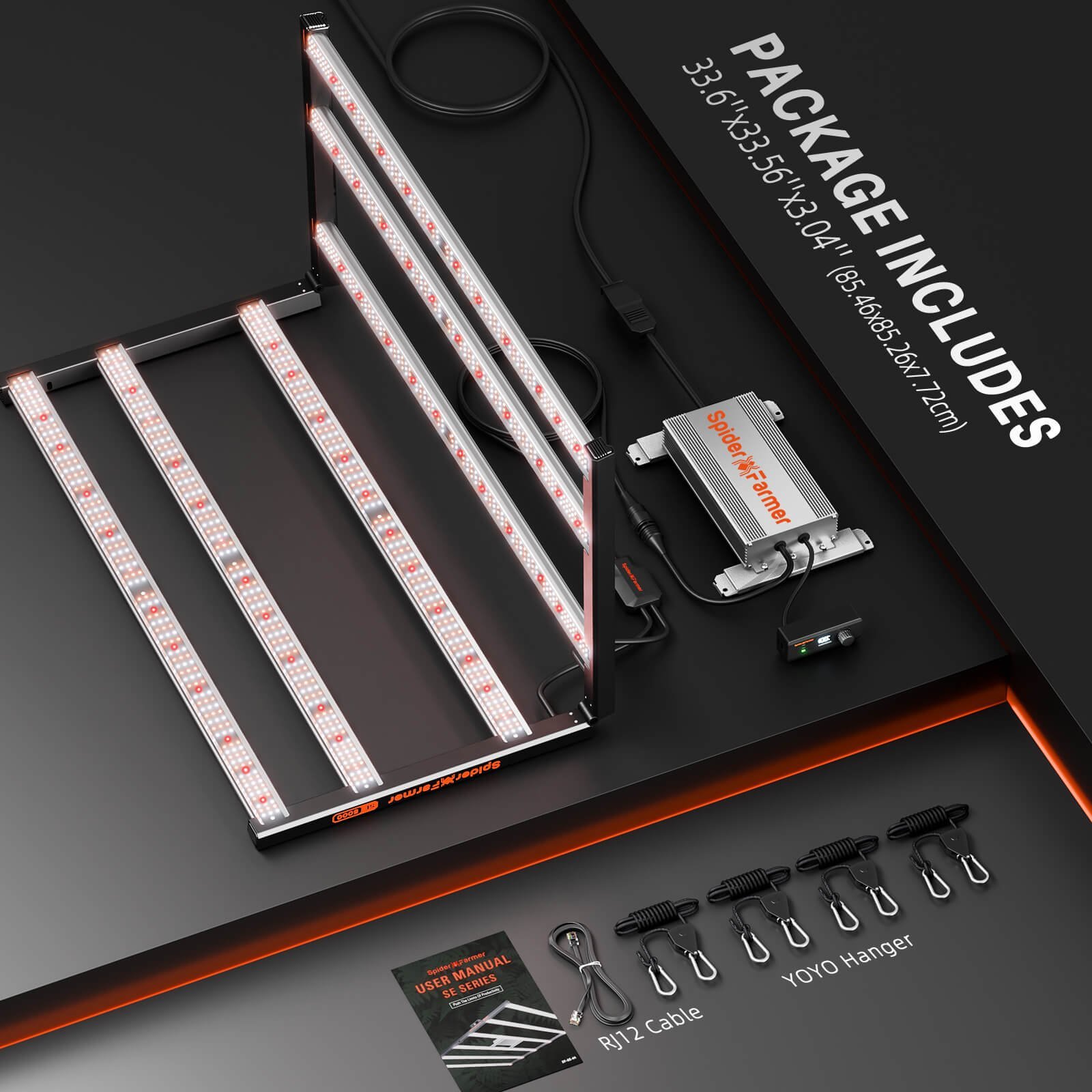 - Hohe Effizienz: PPE 2,9 μmol/J | PPF 1420 μmol/s