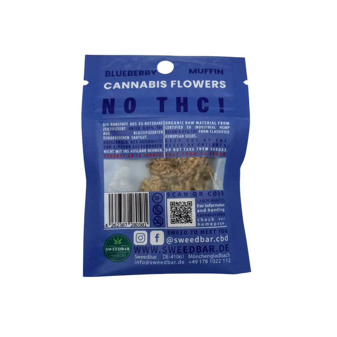 Sweedbar Blueberry Muffin CBD Blüten verwöhnen dich mit einem unwiderstehlichen Dessert-Aroma aus wilden Beeren, cremiger Vanille und einem Hauch Haze – alles ohne THC und mit spürbarem CBD-Gehalt von unter 20 %. Diese hellen, harzreichen Premium-Blüten aus kontrolliertem Indoor-Anbau bieten dir fruchtig-süßen Genuss, der an frisch gebackene Blaubeermuffins erinnert. Du spürst sofort, wie sich dein Körper entspannt, dein Geist klar und ausgeglichen wird – perfekt für entspannte Momente, kreative Pausen oder gemütliche Abende. 100 % legal, EU-konform, pestizidfrei und schonend getrocknet – Sweedbar Blueberry Muffin CBD Blüten sind die ideale Wahl, wenn du hochwertige CBD-Blüten suchst, die richtig lecker schmecken, intensiv duften und dich sanft runterbringen, ohne dich high zu machen.