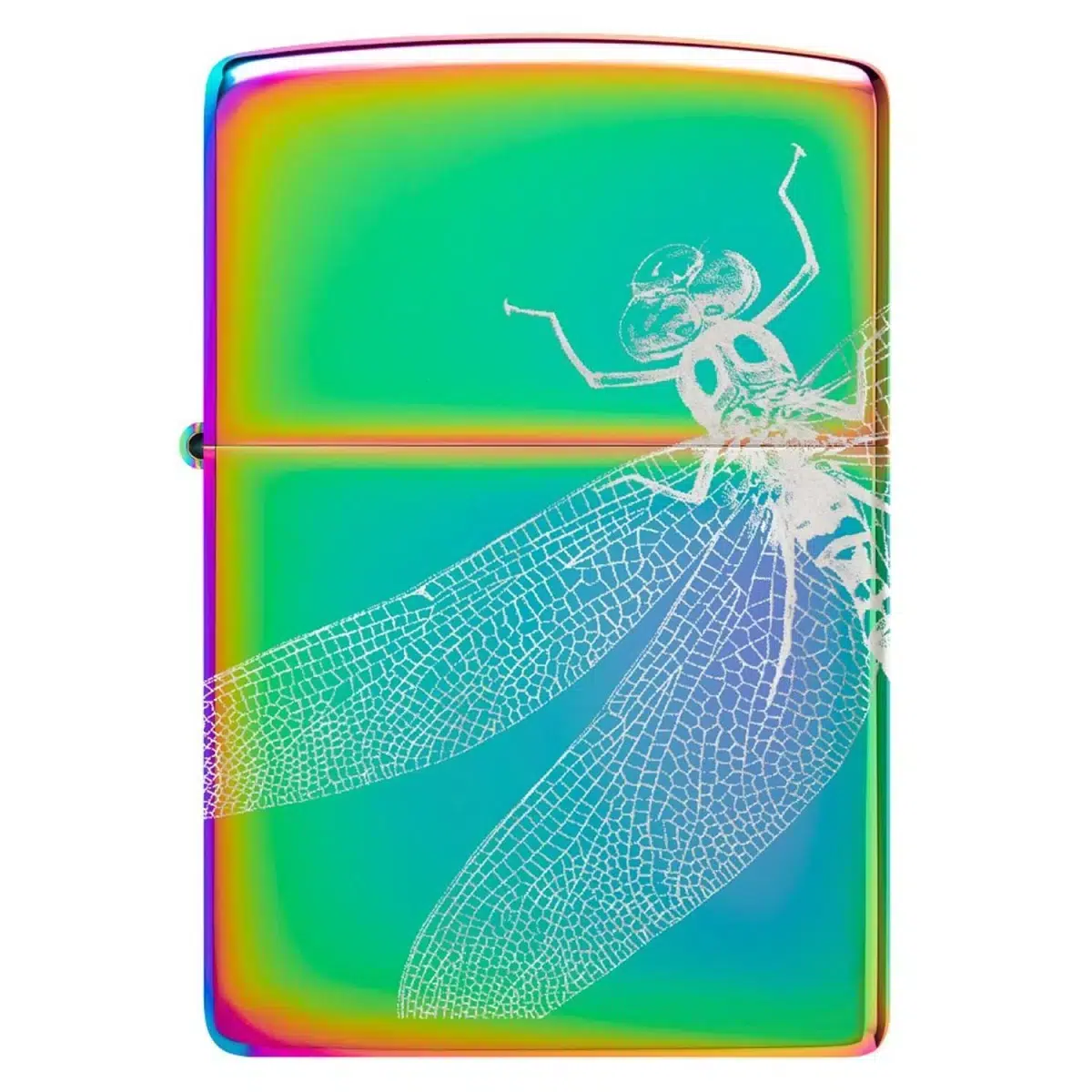 Zippo Benzinfeuerzeug Dragonfly Design ist ein echter Blickfang – mit schillerndem Regenbogen-Finish und filigran gravierter Libelle auf leuchtend grünem Hintergrund. Dieses Feuerzeug vereint Leichtigkeit und Eleganz mit klassischer Zippo-Technik. Der farbenfrohe Farbverlauf macht jedes Stück zum Unikat, die Libelle steht für Transformation, Freiheit und Schönheit. Perfekt für Freigeister, Naturfreunde und Designliebhaber.