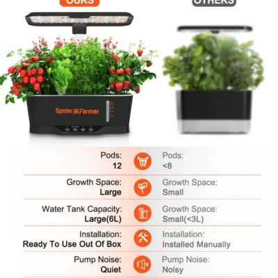 Spider Farmer SmartG12 Hydroponik System mit 36W LED – WLAN – Appgesteuert – 12 Töpfe, 6L Tank